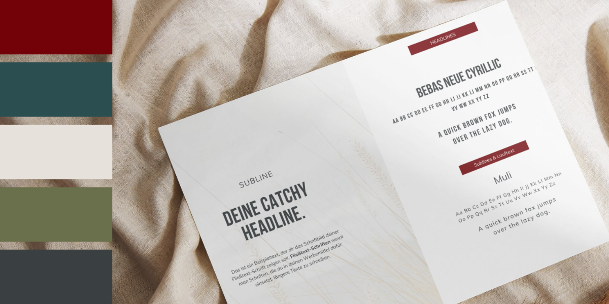 Dein Branding Paket enthält ein Brand Booklet als klares Nachschlagewerk. Es definiert deine Marke, hält alle wichtigen Gestaltungsregeln fest und gibt dir Sicherheit im Umgang mit deinem Branding. So weißt du jederzeit, wie dein Auftritt aussieht und bleibt auch langfristig klar und einheitlich.